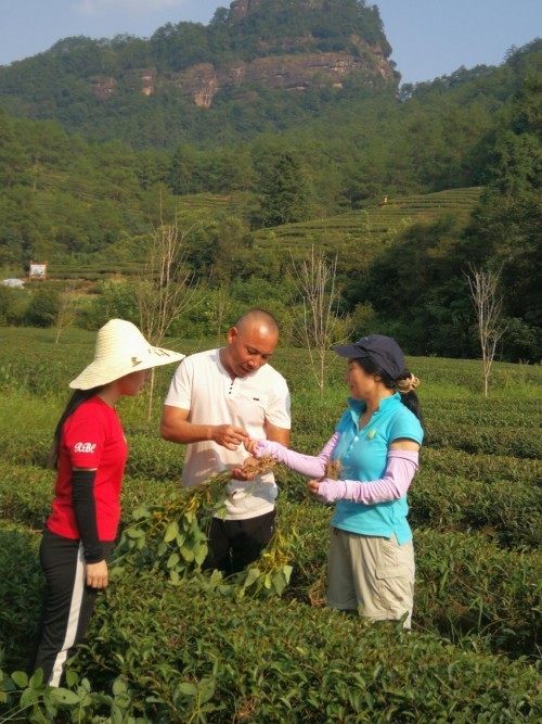 福建农林大学根系生物学研究中心主任廖红介绍,为探索茶园高效、生态、环保建设模式,她与团队走进星村镇,把高效豆科作物提高茶树的养分利用效率,并达到增效等科研成果,运用到茶叶基地建设,以提高茶叶的产量及质量。廖红教授认为,茶豆套种有三个明显作用,一是大豆可以产生根瘤菌,具有固氮作用,增加土壤肥力,茶园里套种大豆可少下或不下氮肥。二是金龟子、蚜虫等更喜欢大豆叶子,从而减少茶树虫害。三是能增加茶叶产量,实验表明,靠近大豆的茶树每平方米可长出190个芽梢数,比没有靠近大豆的茶树多出一倍。